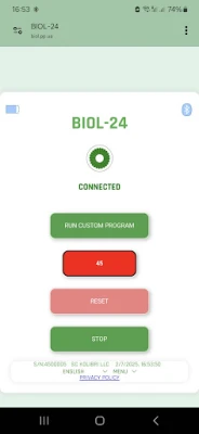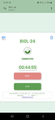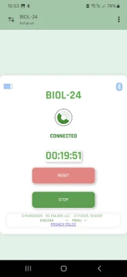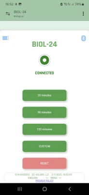The BIOL-24 progressive web application (PWA BIOL-24 or BIOL-24) controls the BIOL device. PWA BIOL-24 works under various operating systems: Windows, macOS, Linux, Unix and iOS using the EDGE, CHROME, VIVALDI and BLUEFLY (for iOS) browsers. The application works in all EU languages. PWA BIOL-24 is very easy to use. It can turn on the BIOL medical device for a selected time interval: from 1 minute to 180 minutes, and has 3 preset intervals of 20, 90 and 120 minutes. 20 seconds before the end of the time interval, it gives a sound signal. The application displays how much time the medical device has left to work, and shows the battery charge level of the BIOL medical device. Controls the medical device using BLUETOOTH BLE