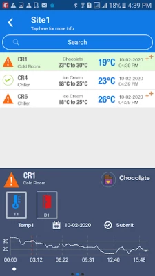 This app is used for monitoring the cold rooms fitted with Tracer Cold Room Monitoring system. The temperature and humidity can be monitored using this application.The app alerts the user when the temperature exceeds the set limit.
