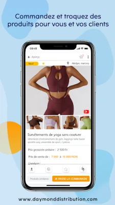 Daymond Distribution est une application mobile révolutionnaire disponible pour une dizaine de pays d'Afrique qui permet à ses utilisateurs de revendre les produits listés sur sa plateforme à prix avantageux sans se soucier des contraintes logistiques ou administratives. Cette appli promet une simplicité et une rapidité d'utilisation afin de permettre aux usagers d'effectuer le moindre effort.