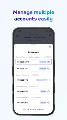 - Check your consumption and balance - Pay or recharge your line - Pay or recharge for a friend - Check for special offers - Change your plan - Purchase data and roaming add-ons - Purchase our products - Manage your accounts - Get chat support - Book an appointment to visit the nearest du store
