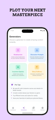 - Four Powerful Tools in One: Generate unique Headcanons, deep Character Prompts, hilarious Incorrect Quotes, and complete Story Outlines or Scenarios.
