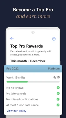 - Priority shifts access, cash bonuses, and instant payments await with our Top Pro Program