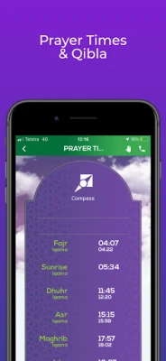 Prayer times, Qibla finder, Hisnul Muslim, Questions & Answers, Events, and more...