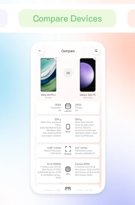 With Mobolist App, the comparison is made more accessible, you can compare phones from any company or brand easily, and with a press of a button, just select the first phone via the search box then choose the second one and see the specifications comparison to know which one is the best phone.