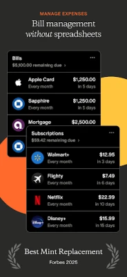 - Always know what’s around the corner with subscriptions and bills tracked in one easy calendar or list view and notifications so you don’t miss a payment.
