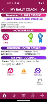 • Log and track events for each dog, from novice trials to advanced competitions.
