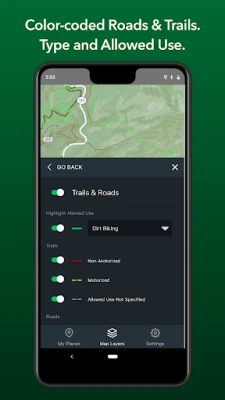 • Trail/road types based on your vehicle (ATV, 2WD, 4WD, Dirt Bike)