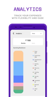 The app also includes flexible analytics on a monthly and yearly basis to monitor your expenses.