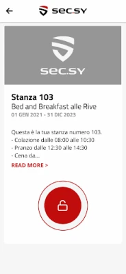 SEC.SY è un’applicazione per smartphone da usare al posto delle chiavi fisiche tradizionali per aprire varchi come porte e cancelli. È un portachiavi digitale che permette di comandare qualsiasi serratura elettrica. SEC.SY funziona grazie alla connessione con il dispositivo fisico S1, la centrale di controllo installata presso la struttura da richiedere al proprio installatore di fiducia o sul sito www.secsy.cloud. L'applicazione SEC.SY comunica con la centrale sia con connessione 3G/4G sia con Bluetooth.