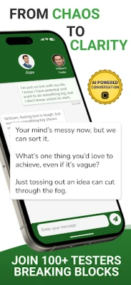 2. Chat for Clarity: Your first 2 messages are free, start breaking blocks in minutes.