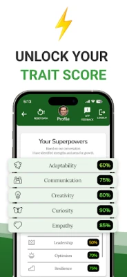 Your first 2 chats are free, start now and unlock your trait score in just 3 more.