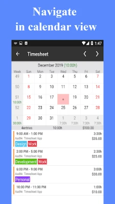 Timesheet is perfect for self-employed, freelancers, contractors, hourly workers and employees to use as time card, know your working hours, automatically calculate earnings, submit time sheet to managers or invoice to customers.