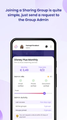 You can use Together Price in two different ways: if you already have a subscription, you can be an Admin and make the unused spaces available for sharing with other people. If you want to join a group, you can be a Joiner and send your sum.